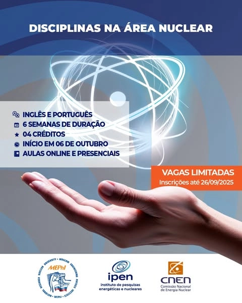 A Pós-Graduação em Tecnologia Nuclear do IPEN, unidade de PG da USP, oferecerá no quarto trimestre de 2025 quatro disciplinas nos formatos online e presencial na área nuclear ministradas por professores do IPEN e do MEPHi - National Research Nuclear University de Moscou.